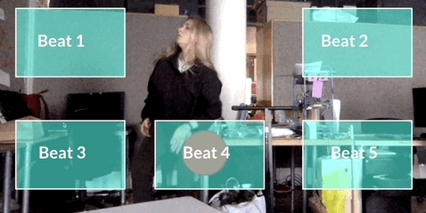 Optimizing user controlAfter set up, came iteration time. In real time, I worked with the dancer to figure out where buttons should be placed. The grid layout was easy for the dancer to recall. We experimented with different body parts, but landed on her wrist to be the best.