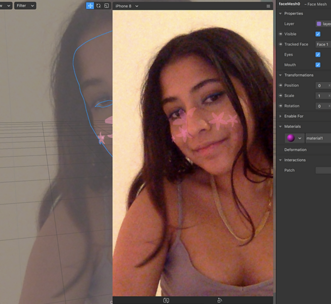 The obvious way was for people to turn their faces when working with the filter. This would highlight their mature bone structure and unique features. So I played around with creating a filter that had a flower blossom from the side of the nose to incentive users to turn their heads.